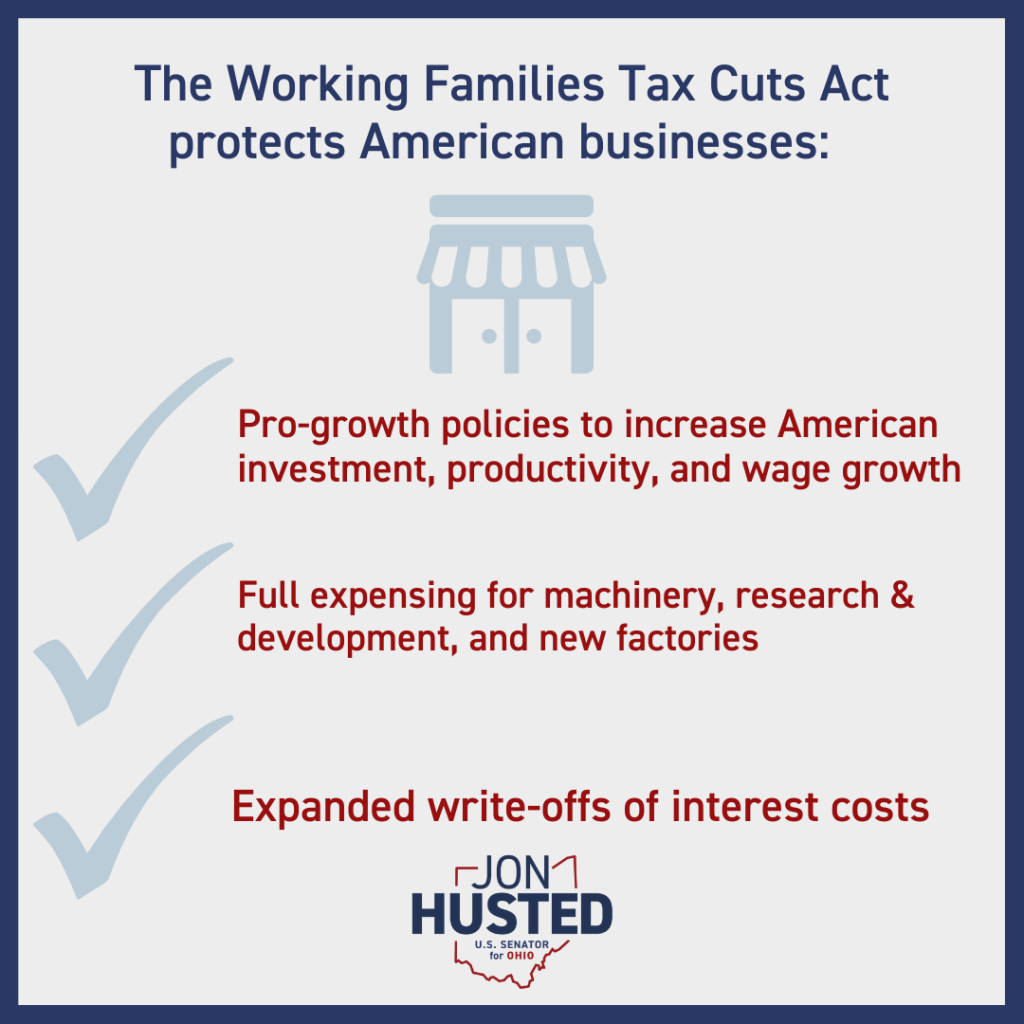 It’s not enough to keep the government out of your pocket—I believe that Congress should incentivize Americans to work hard, raise a family, and run a business. The budget law accomplishes all three. As you file your taxes this year, I hope you will enjoy the benefits of the Working Families Tax Cuts package that I helped make law. This is another step in our work to make Ohioans’ lives easier and more affordable.