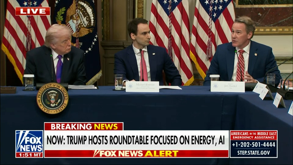 WASHINGTON – Sen. Jon Husted (R-Ohio) today joined the U.S. President Donald Trump, U.S. Energy Secretary Chris Wright, congressional colleagues and technology leaders at the White House for a roundtable discussion on lowering energy costs by committing major tech and AI companies to fund their own data center electricity needs instead of shifting costs onto consumers.
